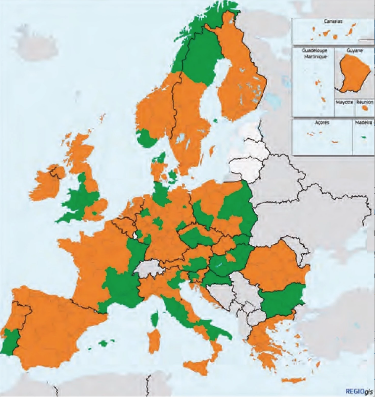 L'innovazione è misurata con una serie di criteri, tra cui il numero di nuovi prodotti inventati, la percentuale di posti di lavoro ad alta tecnologia, e il numero di laureati a disposizione dei datori di lavoro del settore tecnologico. Ciò che risulta in modo chiaro dalla mappa è che c'è una divisione netta tra aree europee che innovano in maniera egregio e altre che tentano a fatica un ammodernamento. Grecia e Spagna, per esempio, stanno producendo poco in termini di innovazione, il che può ostacolare il loro processo di recupero post-crisi economica. A est, la Polonia e la Repubblica Ceca sono tra i paesi meno innovativi in Europa.