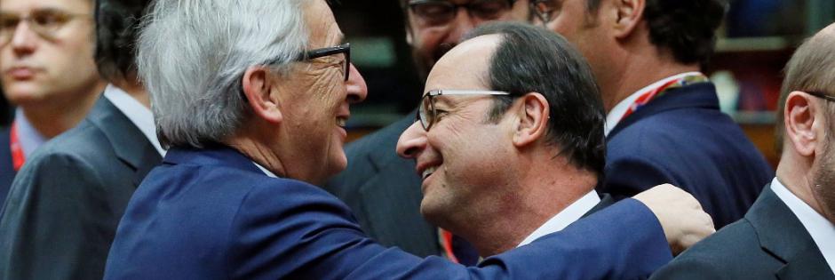 Juncker e Hollande oggi al Consiglio europeo (foto LaPresse)
