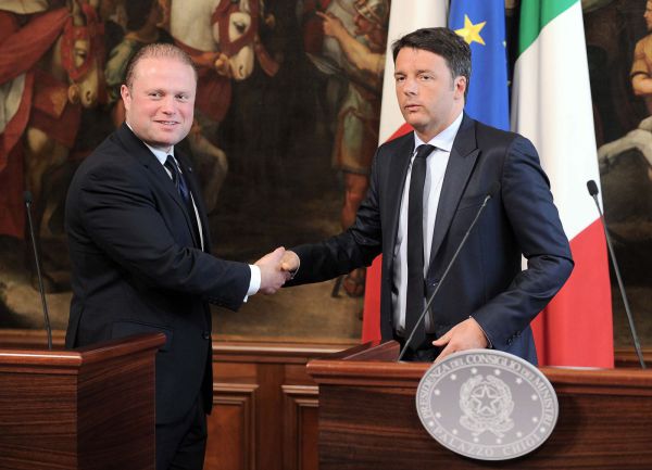 Joseph Muscat con Matteo Renzi (foto LaPresse)