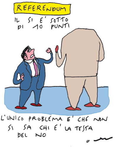 Il centrodestra, che nella parte che sta all'opposizione sostiene il no e in quella che sta nella maggioranza o nei dintorni sostiene il si, finirà, in caso di ballottaggio tra Pd renziano e 5 stelle, per diventare l'ago della bilancia. Renzi lo sa benissimo, e cerca di isolare quelli come Matteo Salvini che sono orientati a favorire i grillini pur di mandarlo a casa, ma ora deve trovare il modo di attirare gli altri, il che dipende da scelte di governo su temi rilevanti, dal controllo dell'immigrazione alla crisi bancaria, alle pensioni e, soprattutto, al regime fiscale. Per dare risposte non puramente propagandistiche su questi argomenti, però, il governo dovrebbe uscire dall'attuale stato semicomatoso.