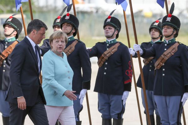 Renzi e Merkel a Capodichino prima della partenza per Ventotene (foto LaPresse)