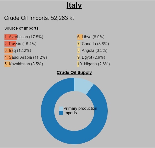 Roma e Atene,tuttavia, rimangono comunque dipendenti dalla Libia per l'8 e il 5,8 % dell'import di greggio.